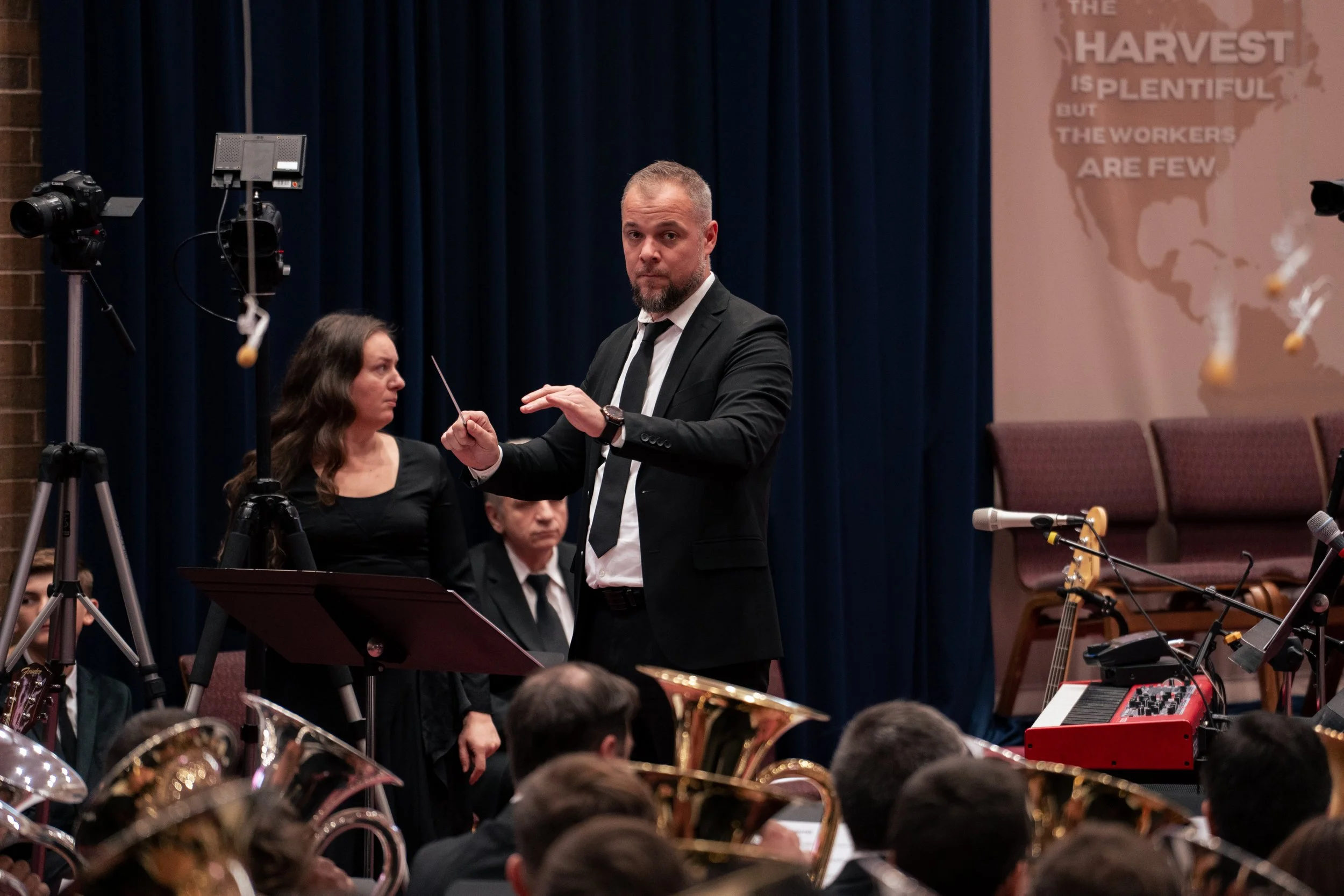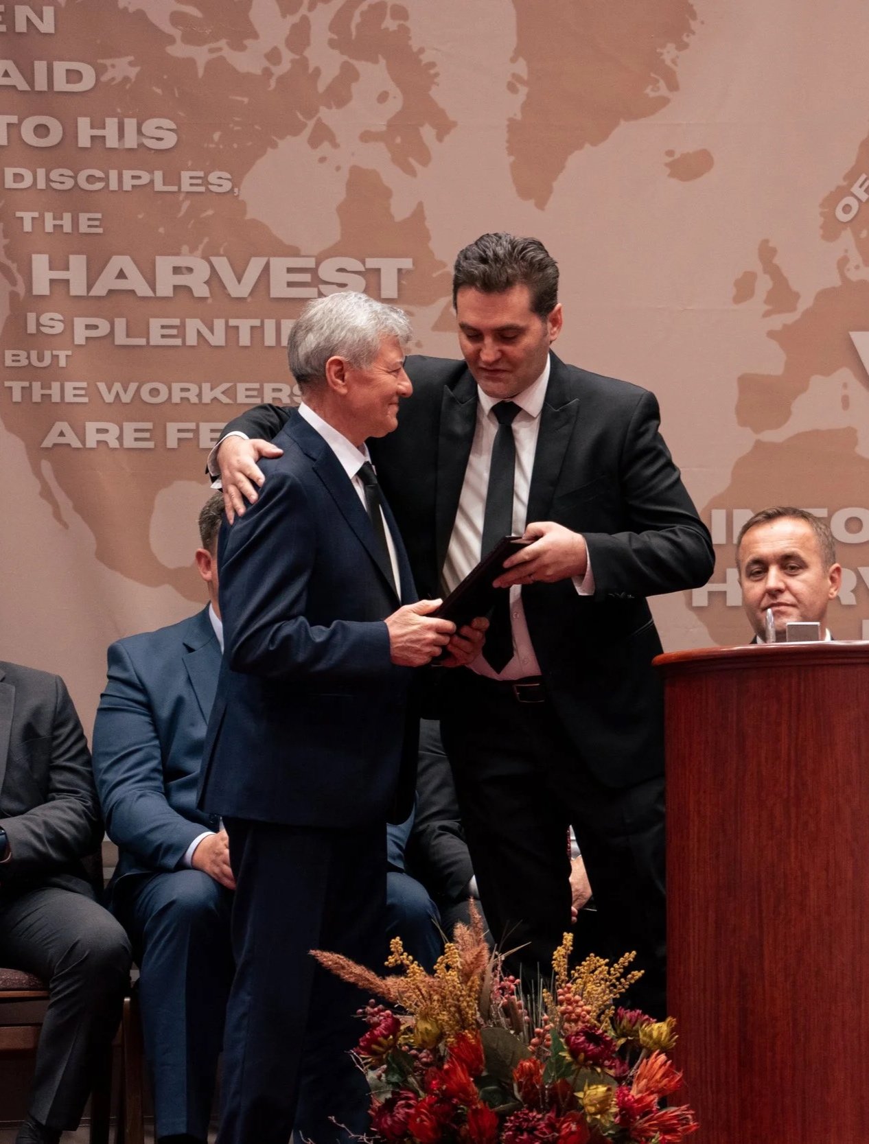 This moment honors Doru Onita for his heartfelt contributions to Romanian Christian Brass Band Music, recognizing his dedicated service and outstanding achievements in church music.